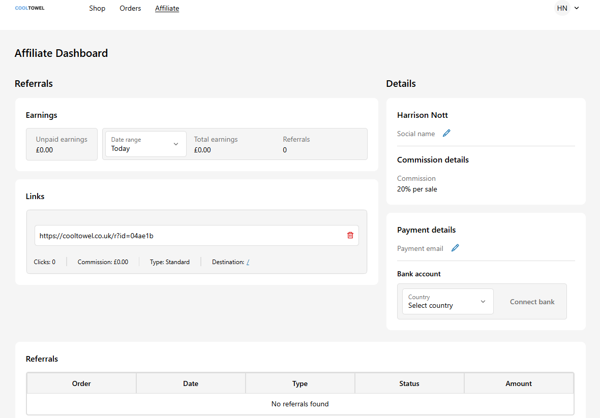 Sign up today to recieve 20% of every sale you refer with your own unique cooltowel link!