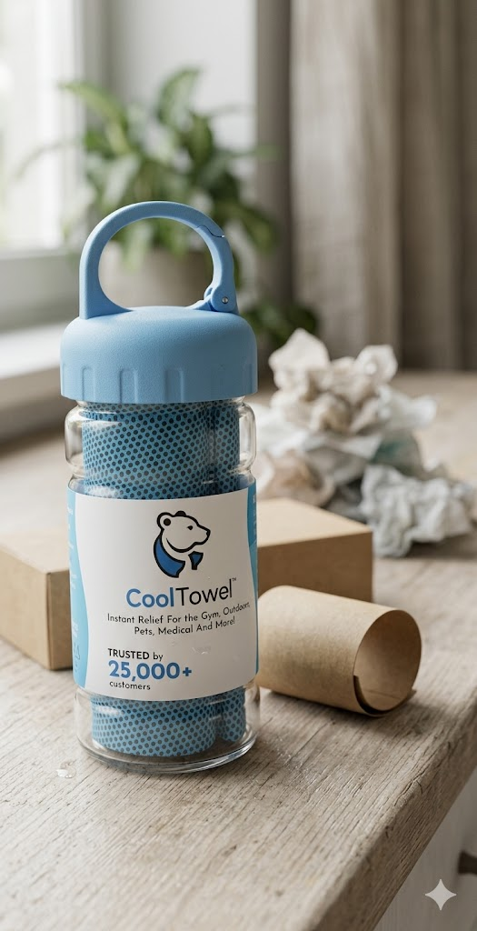 CoolTowel is designed to be used hundreds of times, not thrown away after a summer. Our packaging is fully recyclable. We are not yet manufacturing from recycled materials but we are actively working on it and we will say so plainly rather than greenwash our way through it.