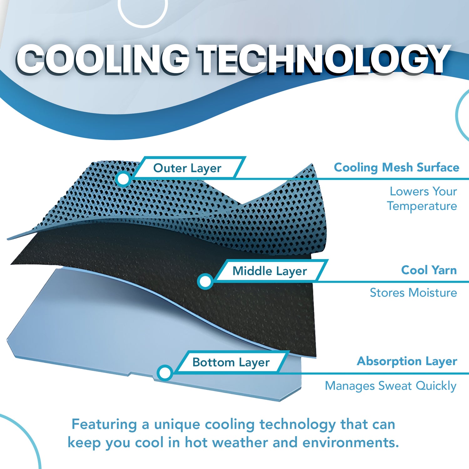 Cooling Technology: A cooling towel works on the same principle as when you step out of a pool on a breezy day and feel chilly even though the air temperature hasn't changed.